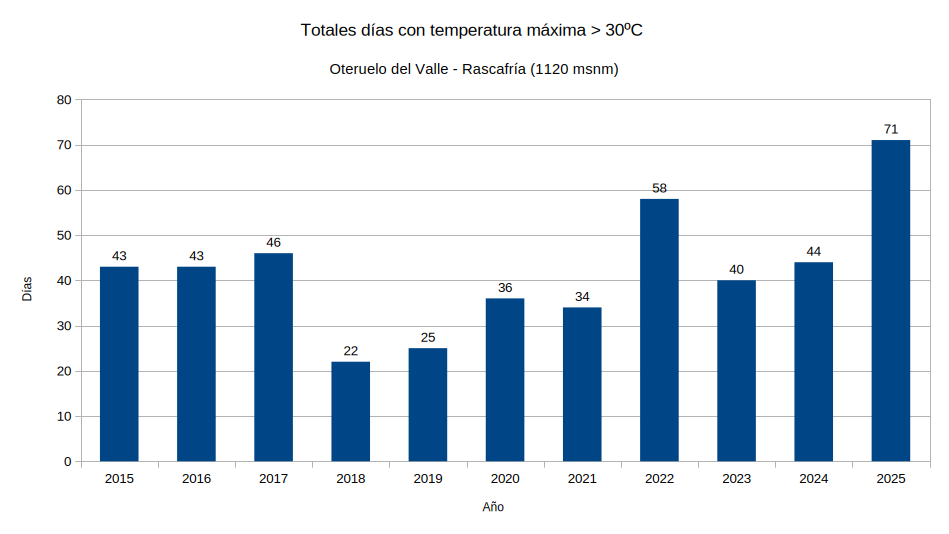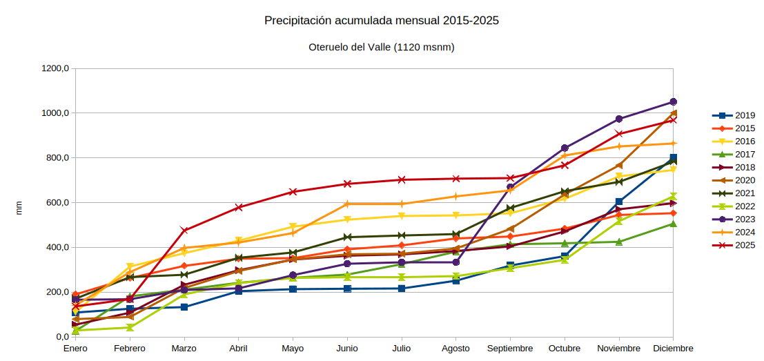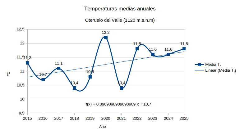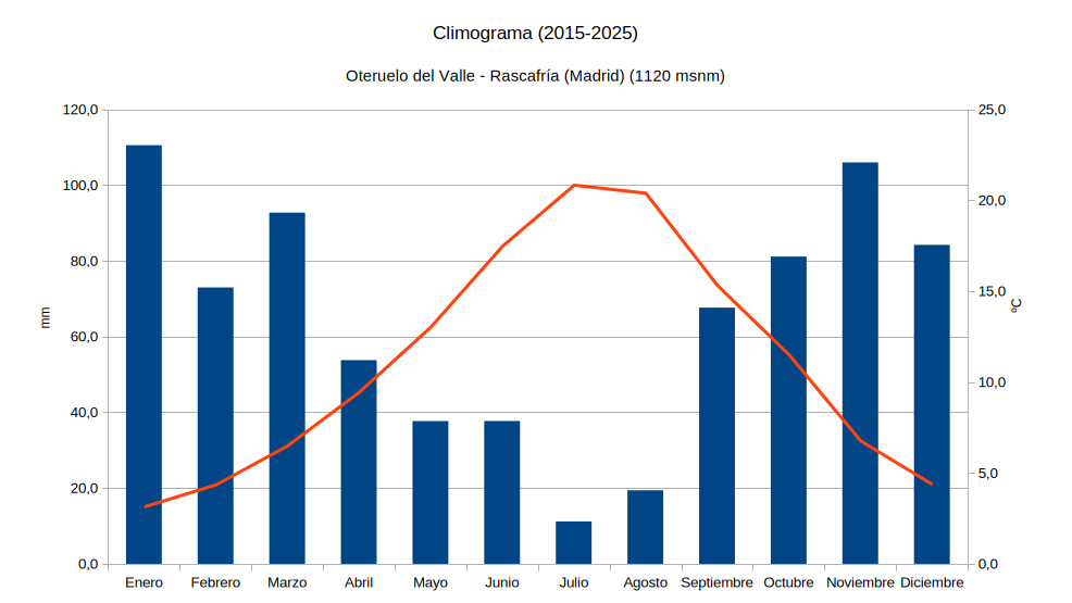 Desde el año 2015 hemos estado recopilando las variables usuales meterológicas, aqui presentamos un resumen climatológico de las mismas (actualizado 01/01/2026). Puesto que estos datos están extraidos de una estación meteorológica amateur y no están validados por ningún organismo científico no tienen mas que un caracter informativo y estan restringidos a su localismo, por lo que no se puede sacar ninguna conclusión a nivel global sobre los mismos.